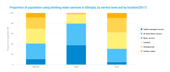 According to the 2020 Human Development Report published by the UN1, 97% water bodies in Ethiopia are of good quality. Ethiopia is the second-most populous country in Africa, yet 87% of the population lives without basic access to safe drinking water. More specifically, portable water plumbed by pipes is accessible to 24 million urban residents, but inaccessible to 90.8 million rural residents.