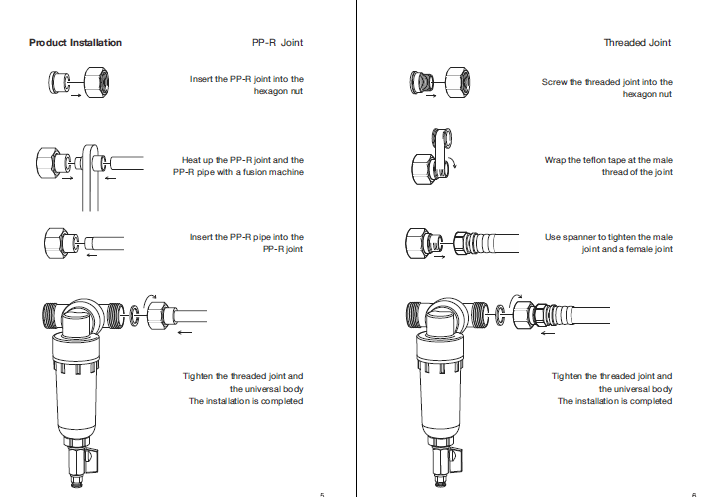 Pre-filter for primary filtration of home users' water supply systems. Usually installed after the water meter of the inlet pipe, before the first water equipment. Use the precision filter to directly intercept impurities in the water, and effectively filter rust, debris, sediment, red worms, and algae in the source water to protect health and other equipment in the water supply system.